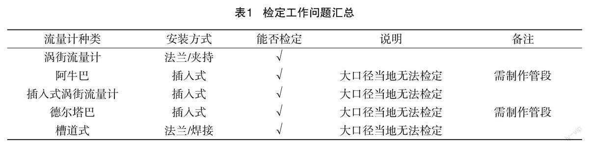 某新材料科技園蒸汽按質量進行貿易核算,計量器具常見配備方式為體積流量測量、壓力測量、溫度測量和流量累積。計量器具檢定工作只有在蒸汽管道停運狀態(tài),才可能完成流量計送檢。管道停運、冷卻、拆除流量計、送檢、檢定、回裝需要3~10 個工作日(檢定時間不可控)。在實際工作中,計量器具送檢工作周期和生產裝置大修期經常無法合理銜接。計量器具配備情況如下。