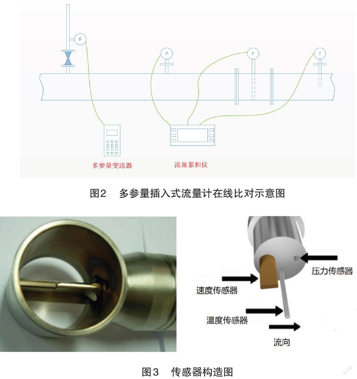 建議利用一種多參量插入式流量計,對現(xiàn)場蒸汽儀表進行在線比對,該流量計可在線插拔,自帶溫壓檢測元件,實時顯示瞬時流量、壓力、溫度和累積量。比對示意圖見圖2。